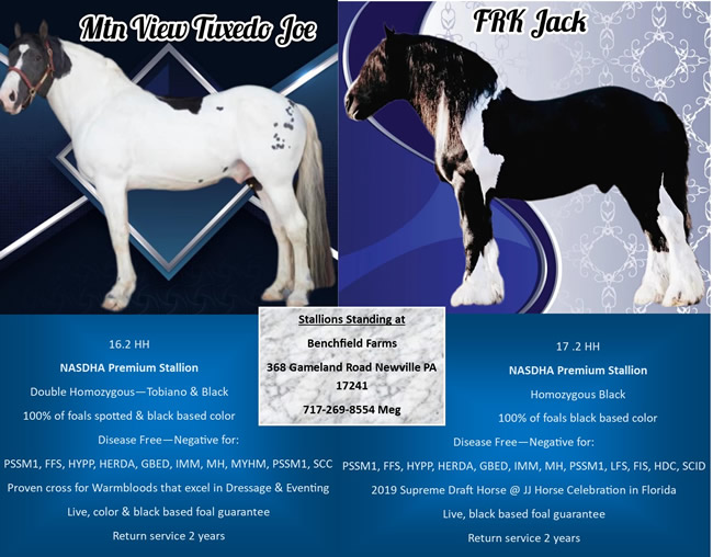 New Stallions have arrived at Benchfield Farms! All stallions are genetically tested with Etalon Diagnostics